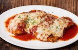 Fresh battered eggplant rolled with seasoned ricotta, baked “parmigiana” style with tomato sauce and mozzarella cheese.